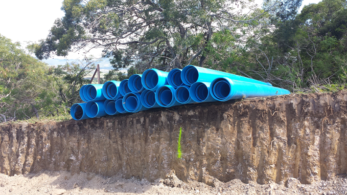 - En 2013-2014, Alimentation de Boulouparis depuis la Ouenghi, 14 km de PVC Bi-Orienté diamètre 315 et 250.