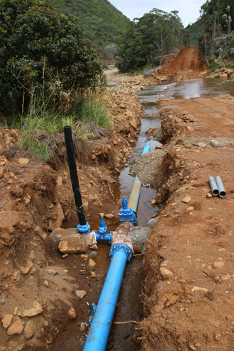 - Bourail : En 2012 et 2013, PVC et fonte DN 400, 9km – Captage Baraoua - Daoui, renforcement de l’adduction en eau de la ville de Bourail